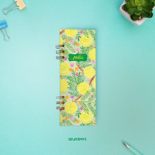 Libreta vertical (8x21 cm). Tapa dura, laminado mate y anillado metálico. 90 hojas rayadas. ¡Ideal para hacer listas y notas breves!