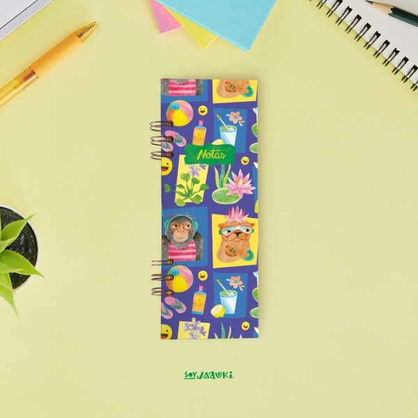 Libreta vertical (8x21 cm). Tapa dura, laminado mate y anillado metálico. 90 hojas rayadas. ¡Ideal para hacer listas y notas breves!